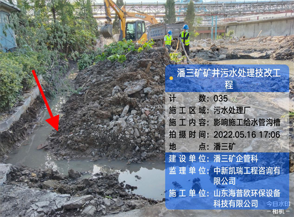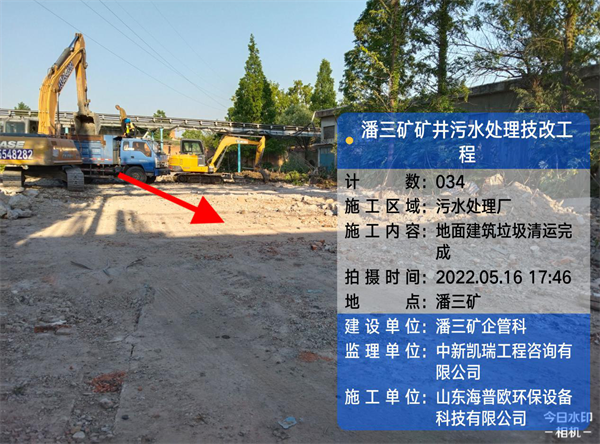 工程名稱(chēng):潘三礦礦井水處理技改工程 氣溫:28-14° 天氣:晴
