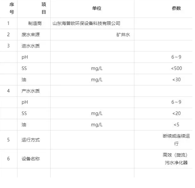 在高懸浮物污水處理中,HPO-XL型高效污水凈化器顯示了較大的技術優(yōu)勢。它無須設置預沉池,可以快速連續(xù)高效地將 SS≤5000mg/L 的污水凈化到 5~30mg/L,該技術最高可以處理 SS≤10000mg/L 的污水,為高濃度含煤污水、灰渣水、礦井污水、砂石骨料沖洗污水、施工污水、高懸浮物污水處理開辟了一條新途徑。
